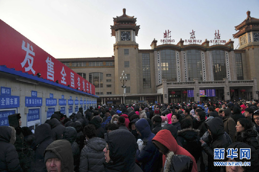 北京站售票廳擠進2000人