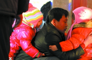 20日,一位乘客在北京站送妻子和女兒去錦州過新年,在車站他抱著孩子依依不舍。本報記者 周曉東 攝