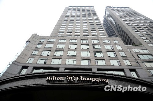 資料圖片:2010年6月20日,據重慶警方通報稱希爾頓酒店因股東涉黑,介紹、容留婦女賣淫,違法經營和故意擾亂社會秩序,造成惡劣社會影響,被責令停業整頓。 中新社發 許康平 攝