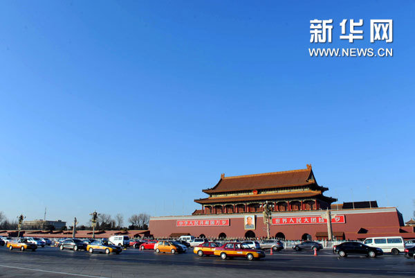 1月31日,北京天安門地區天氣晴好。當日,記者從北京市環保局了解到,2011年1月北京空氣質量天天達標,這是北京市自1998年以來首次出現。新華社記者 公磊 攝
