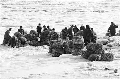 遼寧省連莊河市黑島鎮(zhèn)黃貴城村漁民在收獲牡蠣。王大斌 攝