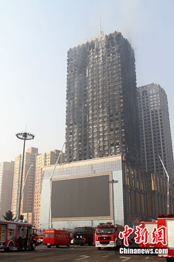 2月3日零點13分,沈陽五星級皇朝萬鑫酒店發生嚴重火災,截至14時,遭遇火災的酒店仍有濃煙冒出。中新社記者 沈殿成 攝