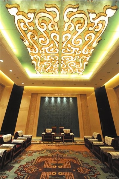 國博外立面沒有太大的變化,外裝飾進行了清洗,損壞的磚進行了更換,基本上保留了1959年的設計式樣。細心的觀者還會發(fā)現(xiàn),新舊兩館從外觀上看最大的不同是檐口,新建筑是金屬檐口,而老建筑是琉璃瓦檐口。有關負責人介紹,考慮到時間久了琉璃瓦容易掉色,有些釉面容易剝落,因此本次采用金屬檐口,但是為了營造手工打造的效果,顏色都是手工刷上去的,看似不均勻的效果原來是精心安排。