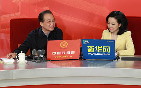 27日上午,中共中央政治局常委、國務(wù)院總理溫家寶再次專程來到中國政府網(wǎng)和新華網(wǎng)訪談室,接受中國政府網(wǎng)和新華網(wǎng)聯(lián)合專訪,同海內(nèi)外網(wǎng)友進行在線交流。