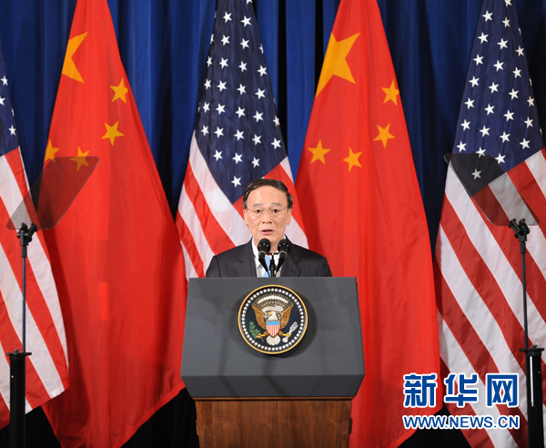 王岐山表示,胡錦濤主席今年1月對美國進行了歷史性的國事訪問,取得了巨大成功,開創了中美關系新局面。中美歷史文化、發展階段、資源稟賦、現實國情不同,但經濟相互依存,高度互補,誰也離不開誰。目前,兩國的經濟總量占世界的三分之一,貿易總額占世界的五分之一。中美經濟關系已遠遠超出雙邊范疇,越來越具有全球性影響。全球化主導的世界經濟格局正發生深刻而復雜的變化。在全球經濟復蘇仍面臨諸多不確定因素的形勢下,中美兩國的經濟社會發展面臨共同的挑戰和合作機遇。圍繞確保經濟復蘇,兩國之間的政策措施既有互補,也有碰撞,但合作的利益遠遠大于競爭的分歧。雙方要更加注重發揮中美戰略與經濟對話的作用,堅持“全局性、長期性、戰略性”的定位,切實推動中美經濟關系健康發展。