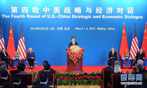 5月3日,國家主席胡錦濤在北京出席第四輪中美戰(zhàn)略與經(jīng)濟對話開幕式并致辭。 新華社記者 李濤 攝