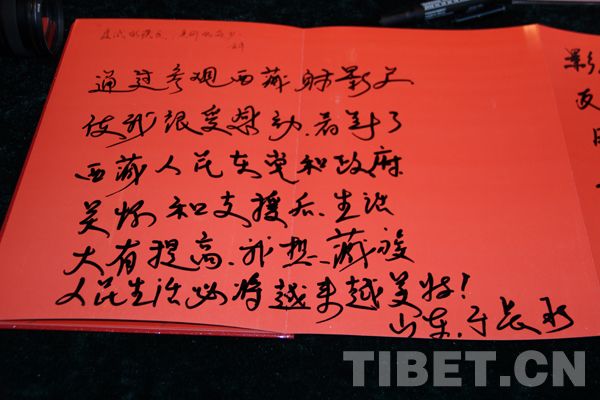 臺北的一位林先生看完攝影展后揮筆寫下“西藏好地方!”幾個大字作為留念。