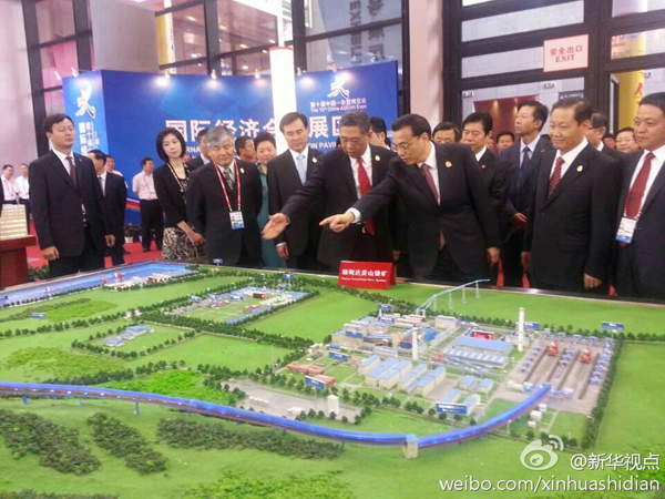 據新華社新華視點微博報道,3日上午,李克強總理在參觀東盟博覽會展館時,專程來到中國有色礦業集團展位,詳細了解了該集團緬甸達貢山鎳礦項目模型,稱贊該項目的設計充分考慮到了當地人民的生活習慣和風俗。