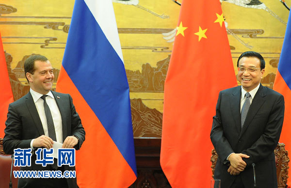 李克強介紹了中俄總理第十八次定期會晤達(dá)成的共識和成果。他說,中俄之間的合作是兩個最大鄰國之間的合作,是兩個安理會常任理事國之間的合作,是兩個主要新興市場國家之間的合作,對兩國、歐亞大陸乃至世界的意義都不言而喻。中方愿與俄方攜手努力,挖掘潛力,創(chuàng)新方式,推動兩國戰(zhàn)略合作取得更多新成果。李克強贊賞中俄不久前為抗擊黑龍江流域洪澇災(zāi)害開展的緊密合作和相互幫助,認(rèn)為這充分體現(xiàn)了兩國的戰(zhàn)略合作和深厚友誼。
