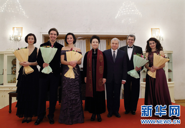 彭麗媛在俄羅斯駐華大使杰尼索夫陪同下欣賞了4位俄羅斯歌唱家演唱的《言歸于好》《黑桃皇后》《搖籃曲》《唐璜小夜曲》《葉甫蓋尼·奧涅金》等柴可夫斯基歌劇名曲選段。歌唱家們精湛的表演深深打動(dòng)了現(xiàn)場觀眾,贏得陣陣掌聲。演出結(jié)束后,彭麗媛走上舞臺(tái)同演員們握手,祝賀演出成功。她說,柴可夫斯基是偉大的音樂家。他的許多作品在中國家喻戶曉,深受人們喜愛。