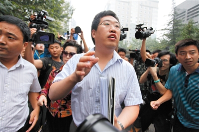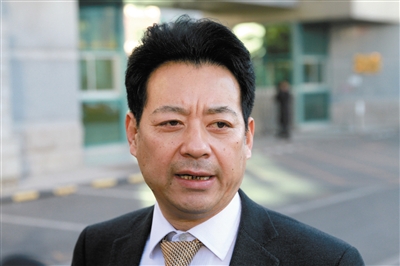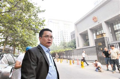 7月22日,海淀法院門前,李某某家法律顧問蘭和接受媒體采訪。當天,李某某等人強奸案舉行庭前會議。新京報記者王貴彬攝
