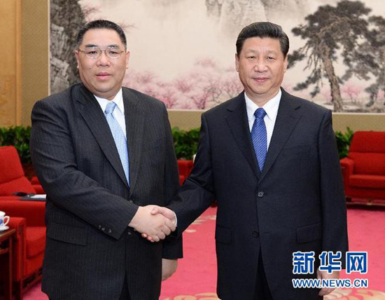 3月18日,中國國家主席習(xí)近平在北京中南海會見來京列席第十二屆全國人民代表大會第一次會議閉幕式的澳門特別行政區(qū)行政長官崔世安。新華社記者劉建生攝