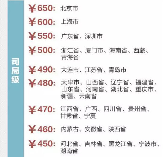 根據《方案》要求,2015年調整后,公務員職務工資標準由現行的340元至4000元分別提高到510元至5250元;級別工資各級別起點標準由現行的290元至3020元分別提高到810元至6135元。