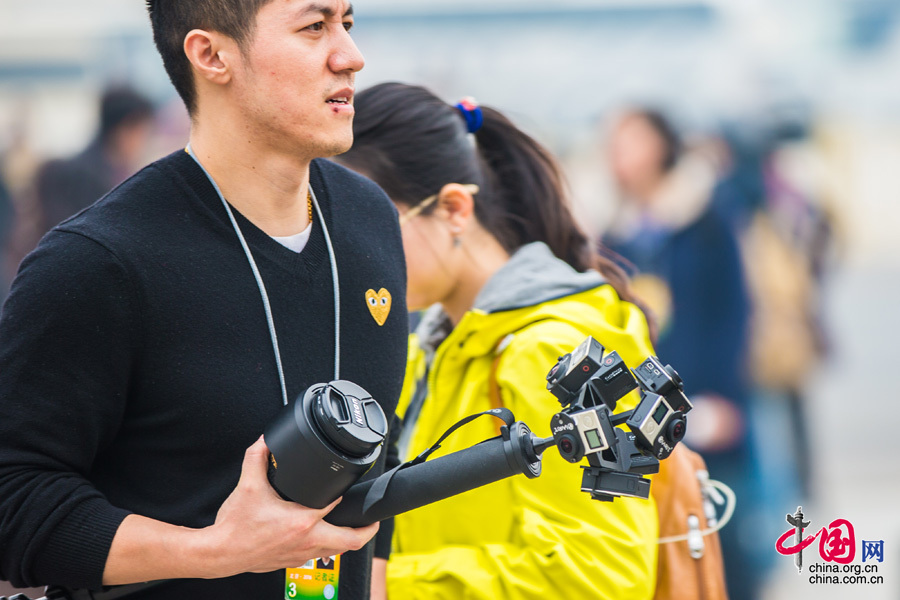 3月3日,中國人民政治協(xié)商會議第十二屆全國委員會第四次會議在北京人民大會堂開幕。步入會場前,各媒體記者紛紛亮出“武器”,各種新科技和新裝備引人注目,成為一道獨特的風(fēng)景線。中國網(wǎng)記者 鄭亮 攝