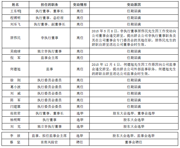 2015年中信證券董監(jiān)高變動(dòng)情況一覽: