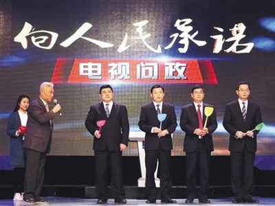 3月27日,南寧電視問(wèn)政節(jié)目現(xiàn)場(chǎng),四位官員手拿問(wèn)政代表送上的蒼蠅拍。