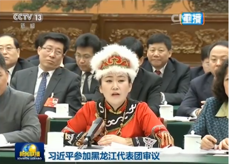 圖為《新聞聯播》中全國人大代表劉蕾發言畫面。