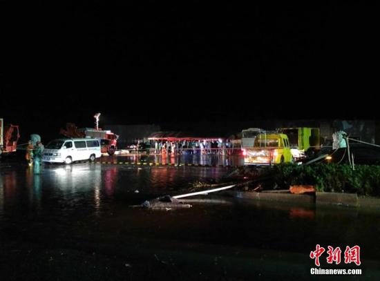 圖為當日22時許,中新網記者趕赴救援現場——鹽城阿特斯協鑫陽光電力科技有限公司。目前仍下著小雨,大批消防和警察在現場救援,門口拉著警戒線。公司門口搭起了帳篷,供救援人員使用,不斷有消防人員和救護車出入。中新網記者 谷華 攝