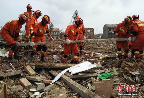 資料圖:6月24日,搜救人員在鹽城市阜寧開發區北陳村進行排查搜救。新華社記者李響攝 圖片來源:新華網