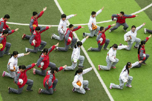 資料圖片:中國學生在上足球課。