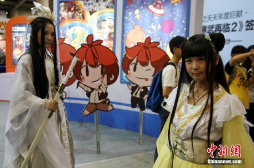 資料圖:5月1日,山西太原,動漫愛好者裝扮成游戲漫畫人物,吸引了眾人圍觀。韋亮 攝
