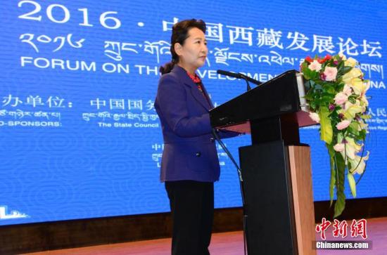 由中國國務院新聞辦公室和西藏自治區政府共同主辦、拉薩市政府承辦的“2016·中國西藏發展論壇”,7月7日在西藏自治區首府拉薩開幕。圖為中共中央宣傳部副部長、中國國務院新聞辦公室副主任崔玉英主持。陳韜彬 攝