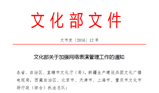 文化部印發《關于加強網絡表演管理工作的通知》。資料截圖