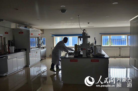 內蒙古西貝匯通牧業科技發展有限公司帶動了當地農牧民奶牛養殖基地的發展。圖為公司質量檢測部門負責人在做鮮奶測定。