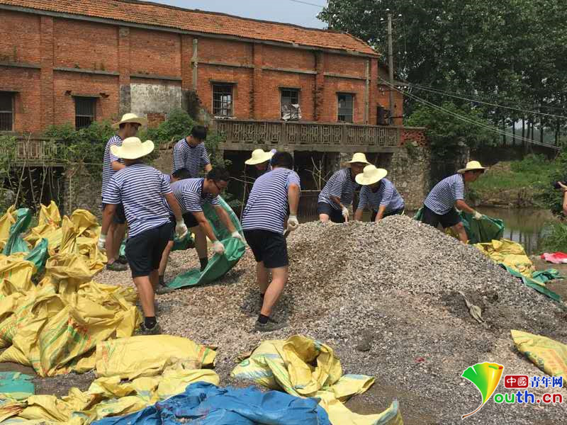 帶隊(duì)老師趙洪武告訴中國青年網(wǎng)記者,他們是來自湖北省"青年馬克思主義者培養(yǎng)工程"的學(xué)員(以下簡稱"青馬工程")。7月9日,在團(tuán)省委的緊急動員下,共計(jì)84名學(xué)員迅速投身到防汛抗災(zāi)的工作中,這十位小伙就是其中的一支分隊(duì)。