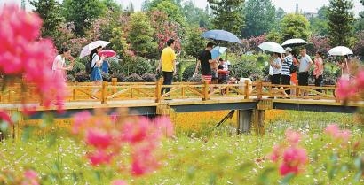 7月23日,成都市新都區(qū)軍屯鎮(zhèn)鄉(xiāng)村生態(tài)紫薇花海吸引眾多游客。該鎮(zhèn)共有15473畝耕地,多用于栽種苗木,綠化覆蓋率高達(dá)50%,是重要的花卉植物生態(tài)保護(hù)屏障,已榮獲“國(guó)家級(jí)生態(tài)鎮(zhèn)”稱號(hào)。 本報(bào)記者 衡昌輝 攝