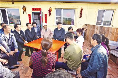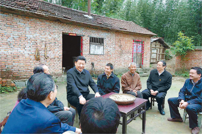 4月24日至27日,習近平在安徽調研。這是4月24日下午,習近平在六安市金寨縣花石鄉大灣村向村民們了解脫貧工作情況。新華社記者 李學仁攝