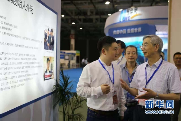 三維碼的興起,也引起不少專家的關注。圖為中國工程院院士倪光南在某展會上與陳繩旭互動。
