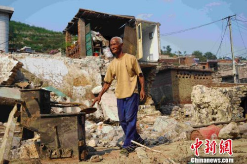 據(jù)貴泉村村民們反映,現(xiàn)在該村供汽車行駛的道路從前都是河道,由于早已干涸,村民就在河道里種上了莊稼,蓋上了房子。中新網(wǎng)記者看到,河道兩側(cè)是一些被水沖倒的莊稼,被洪水沖過的河道中填滿了碎石和泥沙,并依稀可見一些房屋的殘垣斷壁。
