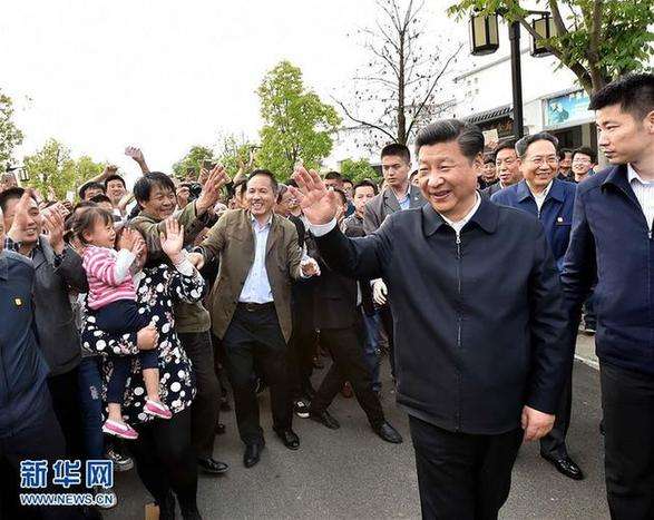 2016年4月24日至27日,中共中央總書(shū)記、國(guó)家主席、中央軍委主席習(xí)近平在安徽調(diào)研。這是4月25日下午,習(xí)近平在滁州市鳳陽(yáng)縣小崗村向村民們問(wèn)好。新華社記者李濤攝