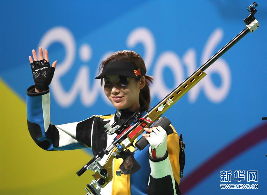2016年8月11日,杜麗在里約奧運會女子50米步槍三姿決賽中獲得銅牌后向觀眾致意。 新華社發