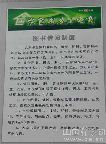 鳳凰村農(nóng)家書屋+電商圖書借閱制度牌。