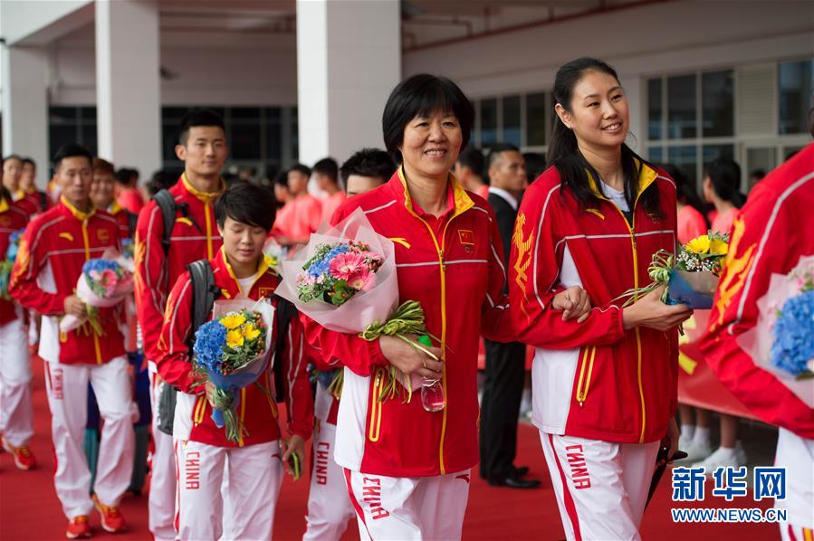 8月29日,中國(guó)女排主教練郎平(右二)等抵達(dá)澳門(mén)外港碼頭。當(dāng)日,里約奧運(yùn)會(huì)內(nèi)地奧運(yùn)精英代表團(tuán)一行抵達(dá)澳門(mén)外港碼頭,展開(kāi)為期4天的訪問(wèn)。澳門(mén)特區(qū)政府在碼頭舉行了歡迎儀式。新華社記者張金加攝