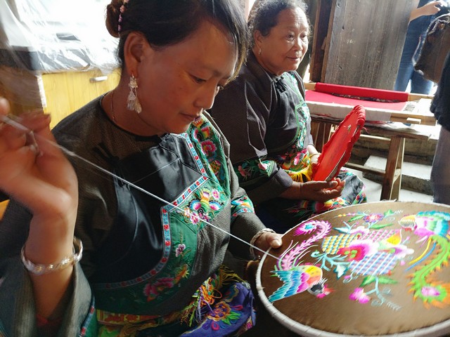 實施精準扶貧后,村里的農婦們也搖身一變,成為巧手“繡娘”,一針一線地繡出了自己的脫貧致富路,繡出了十八洞村的嶄新面貌。