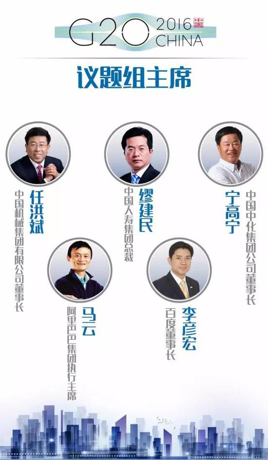 同時,將有全球工商企業、商協會、國際機構和智庫代表共500多人參加B20峰會各議題工作組,中化集團董事長寧高寧、阿里巴巴集團董事局主席馬云等34位國際工商界領袖擔任B20議題工作組的主席或聯合主席。
