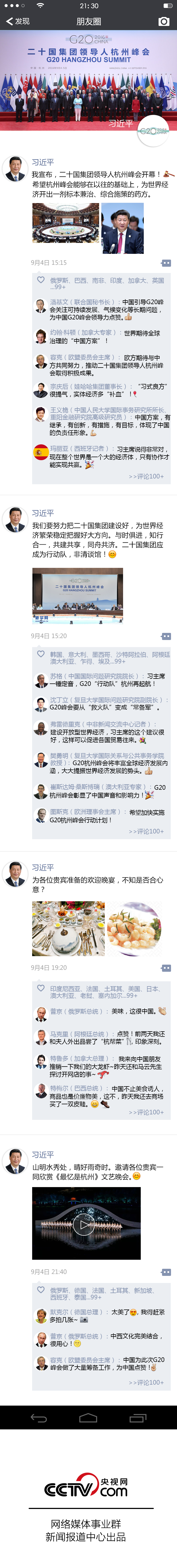 【一圖解讀】G20期間,習(xí)主席都發(fā)了哪些朋友圈?