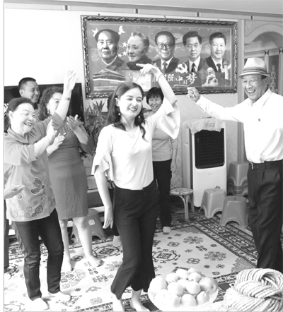 9月12日是古爾邦節,王志軍帶著村里的漢族村民,給買買提·卡斯木拜年。大家圍坐在一起,吃著月餅、葡萄,客廳里洋溢著幸福、歡樂、祥和的氣氛。