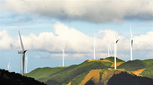 湖南郴州市北湖區仰天湖景區風力發電機組風起云涌,風光分外迷人。1934年11月,中央紅軍在郴州先后突破了國民黨設置的第二道、第三道封鎖線。