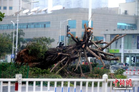 資料圖:廈門街頭隨處可見被“莫蘭蒂”臺風(fēng)連根拔起的大樹。在“莫蘭蒂”影響下,廈門有35萬棵行道樹倒伏,房屋倒塌損壞113處。 中新社記者 王東明 攝