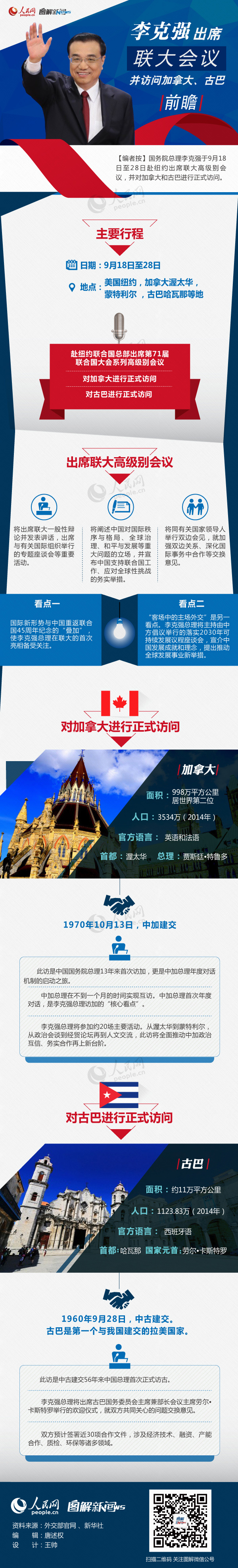圖解:李克強(qiáng)出席聯(lián)大會(huì)議并訪問(wèn)加拿大、古巴前瞻