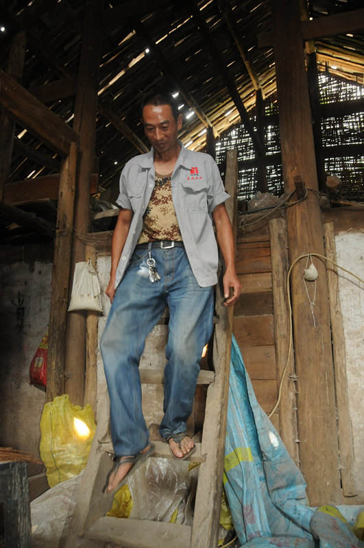 一家四口的貧困戶,擠在一座住了三十多年的吊腳樓里,四面透風,家里沒有任何像樣的家具,坡地上種的苞谷,一年的收成還不夠喂豬。