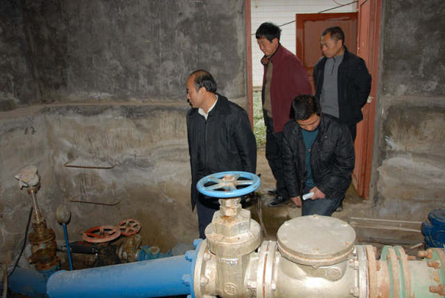姜仕坤到縣自來水廠調研。(資料照片)