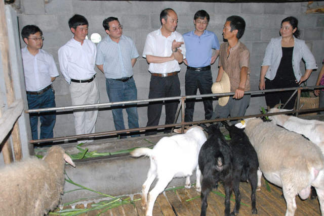 姜仕坤到三合種羊場調研。(資料照片)