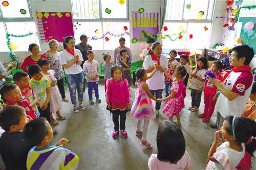 綦江區志愿者在東溪鎮柴壩中心小學和山區兒童互動游戲 攝/陳星宇