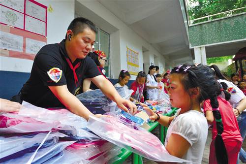 社會志愿者向學生贈送學習用品 攝/陳星宇
