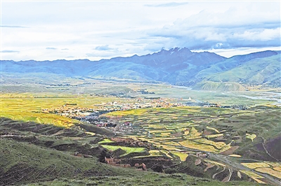 圖:遠眺海拔3400米的甘孜縣城。本報記者 王衛東攝